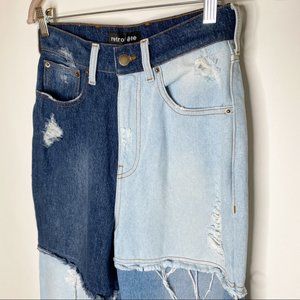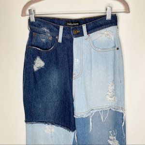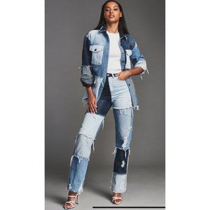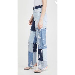 Retrofete Rikki Jeans Patchwork Denim Frayed Straight Leg High Rise New Size 27