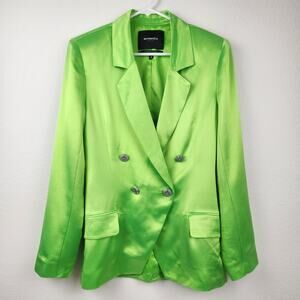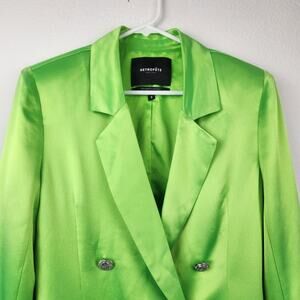 Retrofete Saige Double Breasted Blazer in Lime Punch Green Size Small Satin