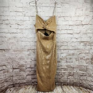Retrofete Sariah Sequin Dress in Nude Size XL NWT Sleeveless Cutout Midi