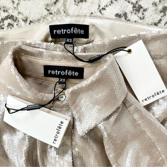 Retrofete Sequin Jace Top and Enzo Pants Matching Set in Champagne