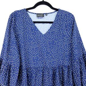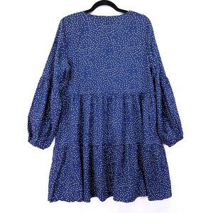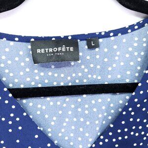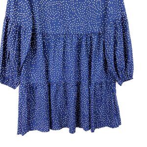 Retrofete Silk Tiered Mini Dress Size Large Blue Polka Dot Balloon Long Sleeve