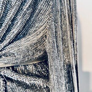This stunning silver mini dress by Retrofete features a chic wrap design that accentuates your silhouette.