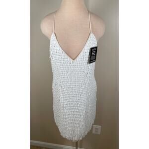 Retrofete Sirena Feather Sequin Cross Back Asymmetrical Mini Dress Size XL is brand new with tags! Sold out everywhere, and the perfect bridal or wedding party dress!