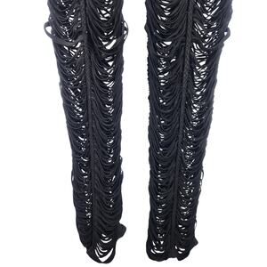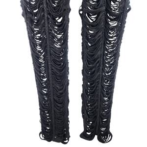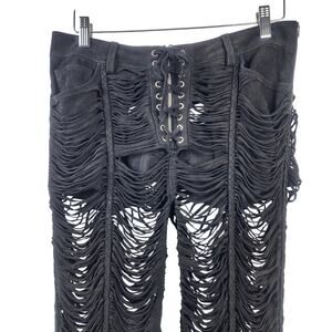 Retrofete Suede Pants Black Size Medium Pockets Sheer Fringe