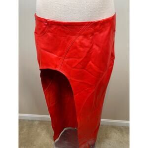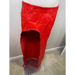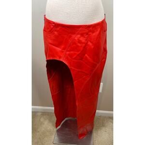 Retrofete Tash Leather Asymmetric High Slit Fiery Red Maxi Skirt Size Medium