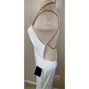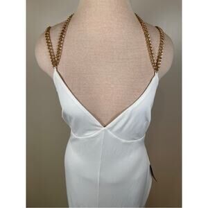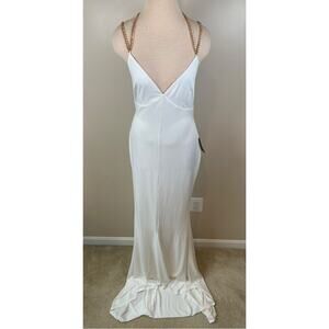 Retrofete Valentina Gold Chain Strap Mermaid White Maxi Gown Size Large