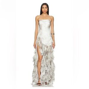 Retrofete Verena Snake Animal Print Silk Ruffle Strapless dress size small NWT