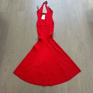 Retrofete Verona Bandage Knit Maxi Dress Red Halter Bodycon - Small - with tags