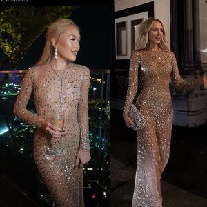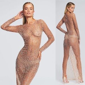 Retrofete Vinci Crystal Embellished Handmade Sheer Maxi Dress Gown NEW with tags