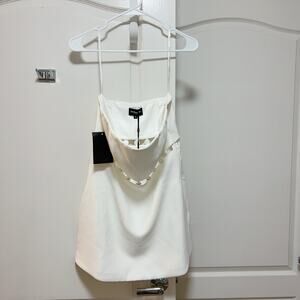 Brand new with tags, Retrofete strapless dress in white featuring elegant pearl embellishments. Designed in a flattering fitted silhouette that highlights the figure, perfect for special occasions. Fully lined for comfort and structure. A timeless statement piece ideal for bridal events, parties, or elegant evenings out. Size M.
