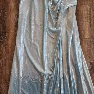 Retrofete Yesi Dress in Blue Silver XXL NWT Metallic Maxi Spaghetti Straps
