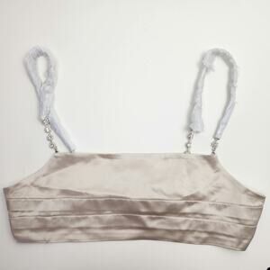 Retrofete Zeke Bra Top in Champagne Size Large NWT Satin Crystal Embellishments
