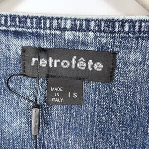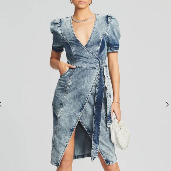 Retrofete Zelda Wrap Dress Sienna Blue Denim V-Neck Puff Sleeve Sz S