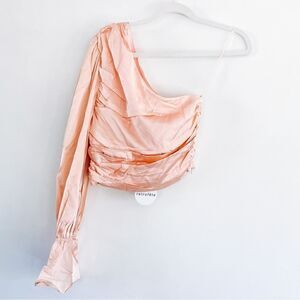 Retrofete Rylie Silk Ruched One Shoulder Long Sleeve Blush Blouse Sz XS NWT
