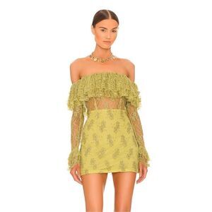 Gorgeous off the shoulder mini dress in lime green with stunning beading and lace by Retrofete. Perfect for a bachelorette, wedding guest look - showstopper no matter what! Super flattering!!