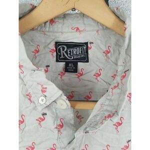 Retrofit Men's Shirt Flamingo Print Short Sleeve Button Down XL Pocket