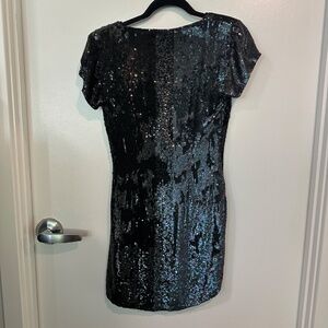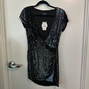 Retrofete Olya Sequined Black Two Toned Mini Wrap Dress