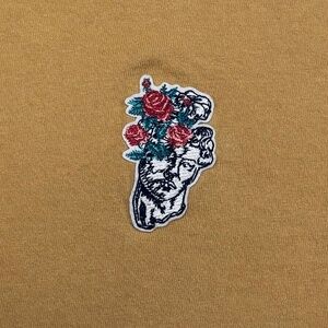Retrofit Rose Head Patch T-Shirt, Short Sleeves, Tan/Mustard/Yellowish, Small