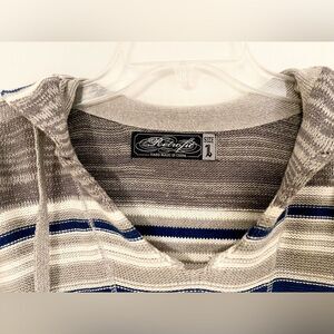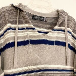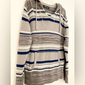 Retrofit pullover hoodie sweater. Blue, grey, white. Size large. Kangaroo pouch in the front. Excellent condition. Smoke free home.