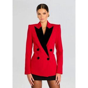 Retrofête, Angelica Blazer, double-breasted jacket, velvet trim, red blazer, Cardinal red, size XS, tailored blazer, formal jacket, women's fashion, luxury outerwear, structured blazer, fall fashion, statement jacket, like new condition