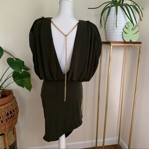 Retrofête Chessie Bodycon Chain Mini Night Out Dress in Olive sz L