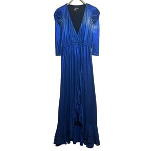 Retrofête Sz Small Metallic Royal Blue Wrap Evening Dress Cocktail Ruffle Sleeve