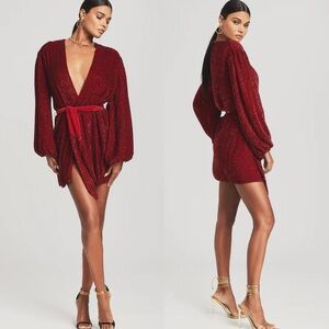 Size XS NWT Retrofête Gabrielle Robe in Ruby Red. Has some missing sequins shown in pics, comes with extra for replacements if desired to reattach. Wouldn’t be noticeable in my opinion. Introducing the ultimate party frock: The Gabrielle Robe. Enveloped in hand-stitched sequin embellishments, this whimsical multi-color striped silhouette features a wrap bodice, which is complemented by voluminous blouson sleeves and a velvet tie belt to cinch the waist. For a micro mini moment, we recommend sizing down. Shown here in Ruby. • HANDMADE • 100% Viscose • Made in India