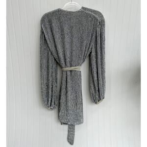 Retrofête Gabrielle Silver Sequin Wrap Mini Dress Kimono Sleeve Belted Medium