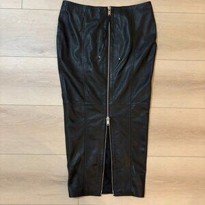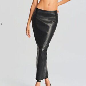 Retrofête Liza Leather Midi-Maxi Low Rise Back Zip Skirt