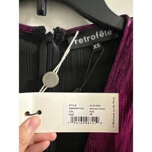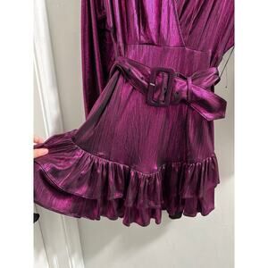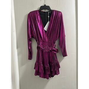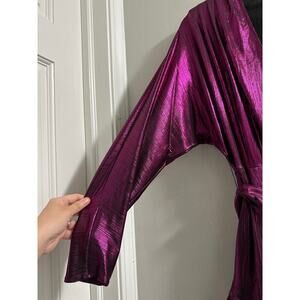 Retrofête Maureen wrap-effect metallic jersey mini dress XS Purple New