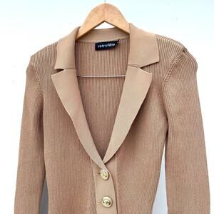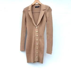 Retrofête Mimi Rib Knit Button Front Collared Mini Dress Nude Small Tan Stretch