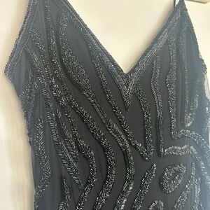 This is an absolutely stunning piece. I wore it for a Great Gatsby-themed party, and it was perfect! The beading on this dress is so intricately and beautifully done. The dress also features a side zipper so that it is easier to put on.