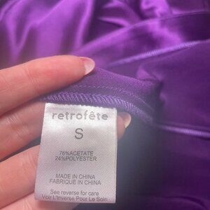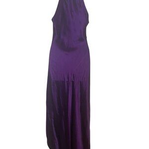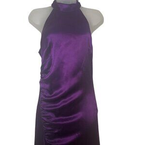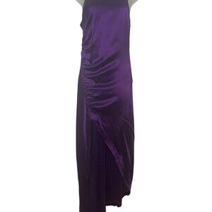 Retrofête SAB Purple Satin High Neck Dress Small NWT Ruched Slit Gown Formal