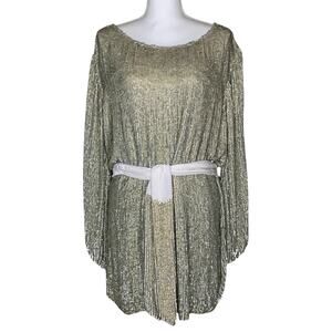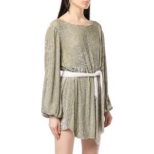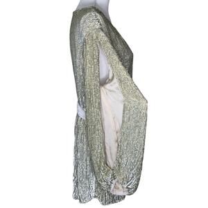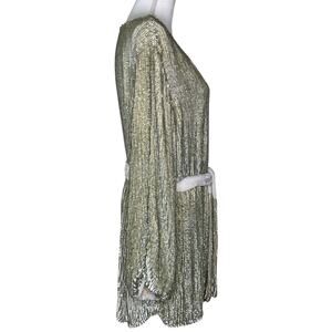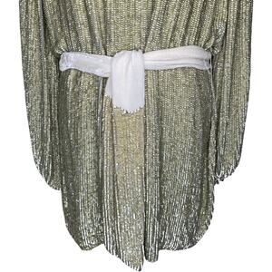 Retrofête Selma Champage Sequin Split Sleeve Keyhole Belted Robe Mini Dress