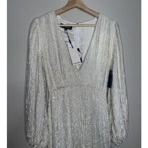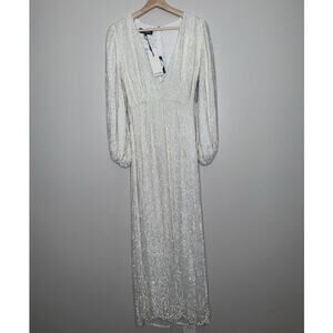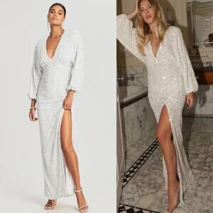 Retrofête White Sequin Maxi Dress XS NWT Bridal Wedding Reception Gown Slit
