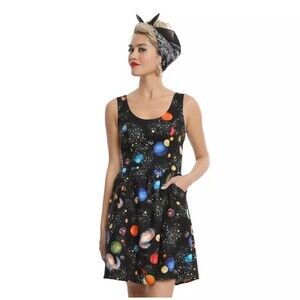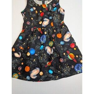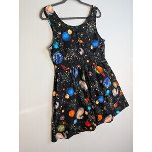 Retrolicious Black Fit & Flare Space Print Sleeveless Dress L Planets Galaxies