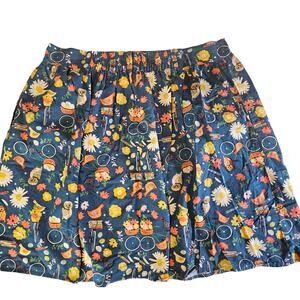Retrolicious ModCloth Floral Bikes Pleated Short Skater Skirt Plus Size 2XL 3632