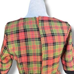 Retrolicious Orange Green Plaid Fit & Flare Dress With Pockets Size Small Retro