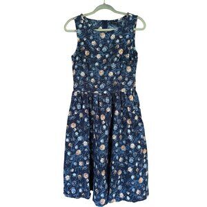 Retrolicious Space-Themed Sleeveless Dress With Retro Planets & Stars Print