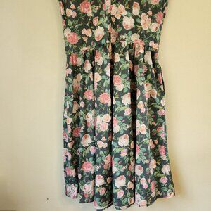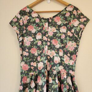 The Retrolicious Women's Greta Dress in size XL is a vintage-inspired dress with a flattering fit and flare style. Made from 100% cotton fabric, this midi-length dress features a V-neckline, cap sleeves, and an empire waist for a feminine and romantic look. The multicolor floral print adds a retro touch to the dress, making it perfect for various occasions such as weddings, parties, or casual outings. With a zipper closure and pockets details, this dress is a stylish and comfortable option for the spring, summer, or fall seasons. In Excellent Pre-Owned Condition. Please pay attention to the measurements, this is final sale no return for reason of measurement except the product not like the description when you receive.