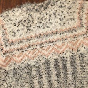 Retrology Long Sleeve Feather Knit Pink Gray Cream Long Cardigan Sweater Size M.