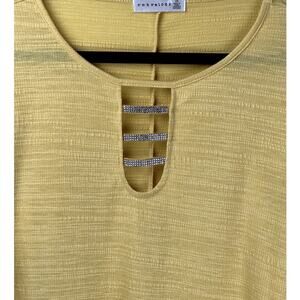 Retrology Women Plus Size 2X Jeweled Boat U Neck Detail Short Flouncy Sleeve Top