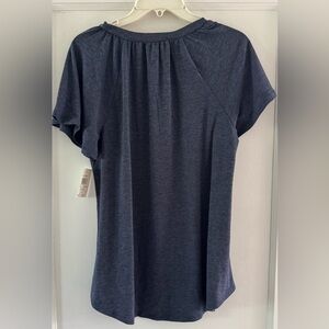 Retrology Women's Navy Heathered Top with Metallic Trim & flutter sleeves Sz M