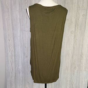 Retrology Womens XL Pullover Sleeveless Top Olive Green Twisted Side Knot NWT