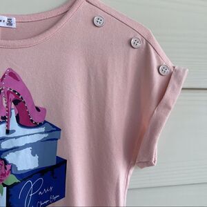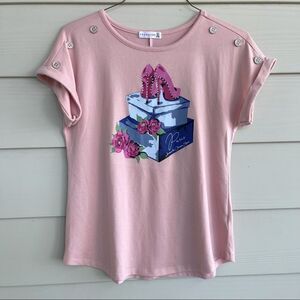 Retrology Women’s Graphic Paris T-Shirt Size Med Roses Rhinestones Chic Fashion
