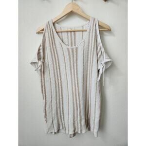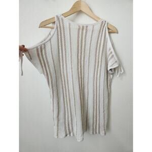 Retrology white tan cold shoulder sweater top M beach poncho womens