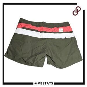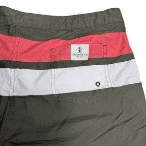 Retromarine Men's Double Color Block Swim Trunk Board Shorts Olive White Size 36