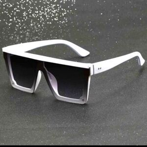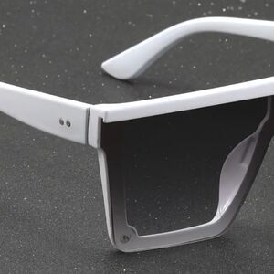 Cyberpunk Cool White Flat Top One-piece Square Fashion Glasses, For Men Women Outdoor Sports Party Vacation Travel Driving Fishing any occasion.