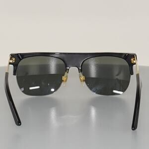 These sunglasses feature a bold, black Italian acetate frame paired with signature gold metal temples. Handmade in Italy, they exude quality and style.