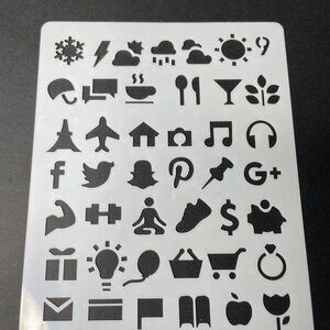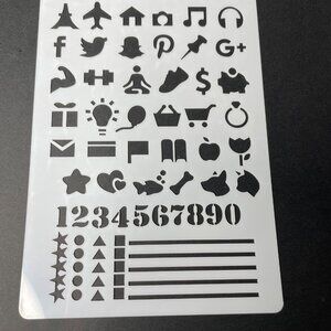This white Reusable Art Planner Stencil is perfect for adding creativity to your bullet journal or mixed media projects. Made from solid plastic, it features an activity numbers checklist and social media symbols.
